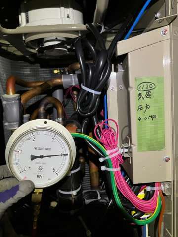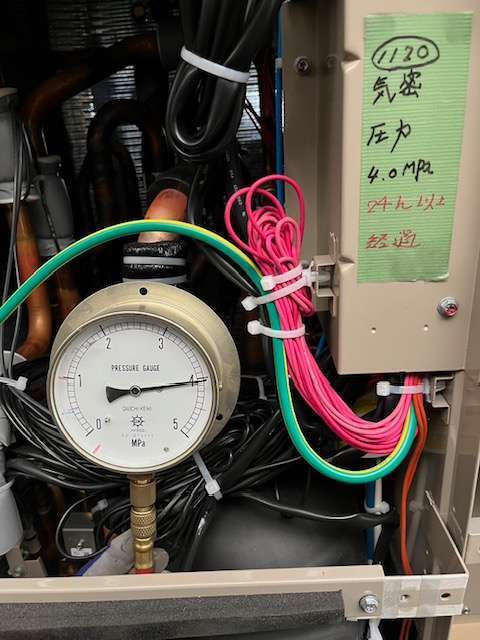 窒素ガスにて敷設した冷媒配管の漏れチェック